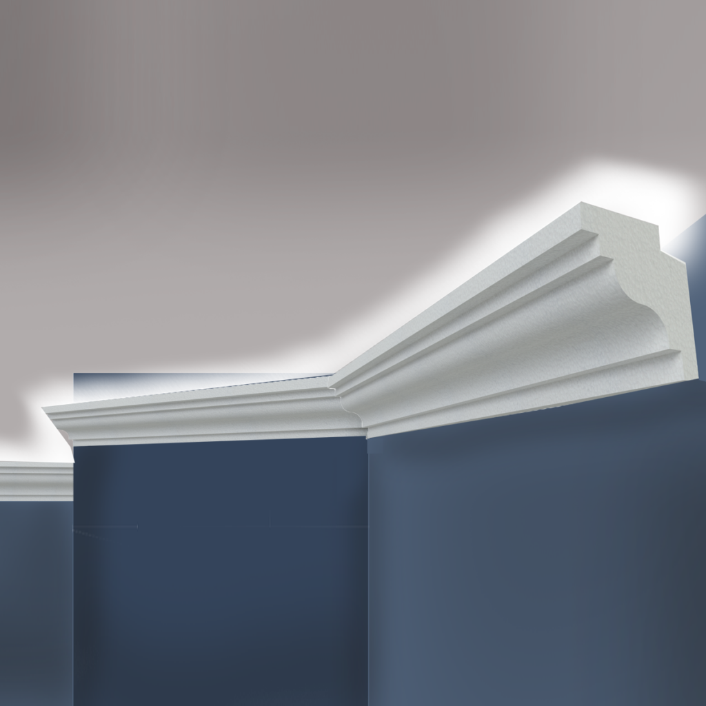 Nuestras molduras son un accesorio decorativo fabricado en diferentes tamaños y estilos que poseen un diseño especial para permitir que se aloje una tira led y así obtener un efecto de iluminación en los techos y paredes.